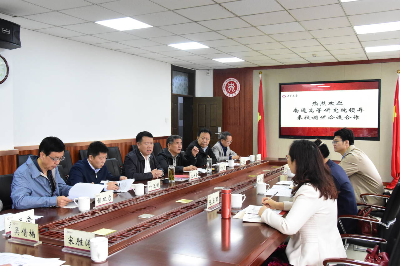 10月12日,江苏省南通市政协副主席、南通高等研究院院长施学雷、书记陈玉君一行来校,就双方共建中北大学—南通智能光机电研究院进行调研洽谈。校长沈兴全、副校长曾建潮及相关部门和学院负责人参加了座谈会。