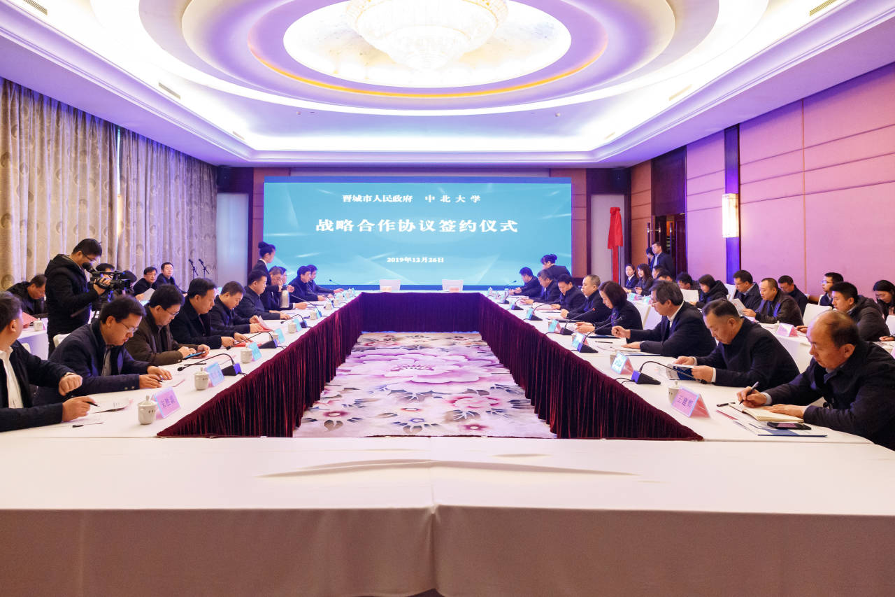 12月26日,我校与晋城市战略合作协议签署暨 “中北大学晋城先进材料与智能装备研究院”揭牌仪式在晋城举行。校长沈兴全与晋城市市长刘锋共同为“中北大学晋城先进材料与智能装备研究院”揭牌;副校长李东光、晋城市副市长梁丽萍代表双方在合作协议书上签字。省教育厅科学技术与信息化处处长赵瑞出席签约仪式。梁丽萍主持签约仪式。